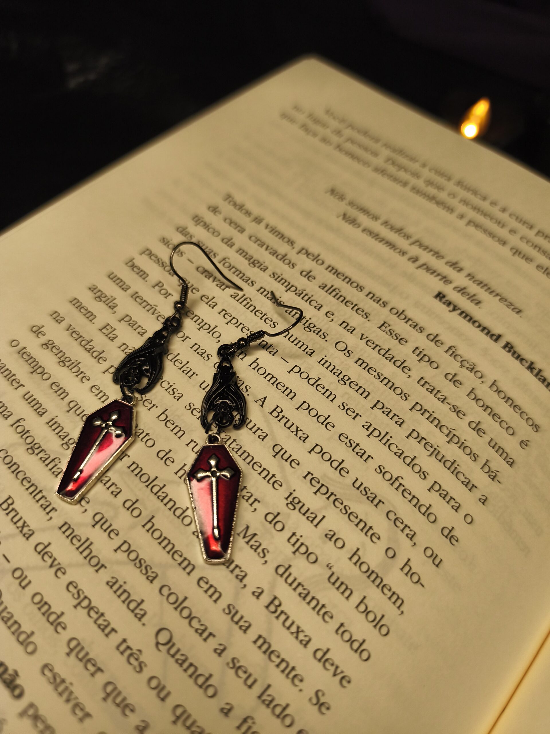 Mergulhe na elegância macabra do estilo noturno com o Brinco Gótico Caixão e Morcego. Este acessório dramático combina um pingente de Caixão esmaltado em vermelho e preto, com um pequeno detalhe de cruz/espada, suspenso de um topo em forma de Morcego/Asa. A paleta de cores e os símbolos remetem diretamente ao Gótico Vampírico e à fascinação pela morte (Memento Mori). É a joia perfeita para adicionar um toque de drama, mistério e sofisticação macabra ao seu visual