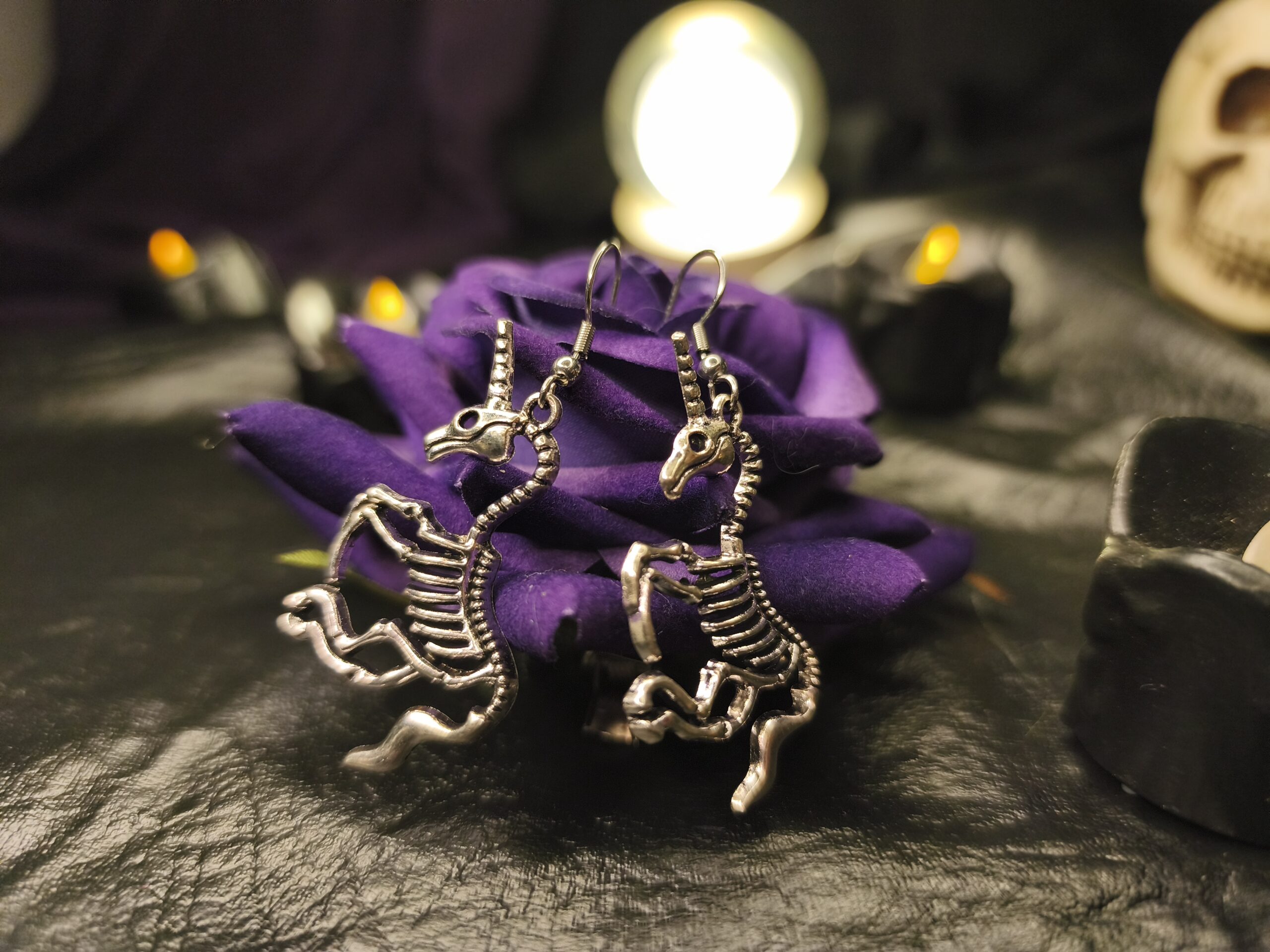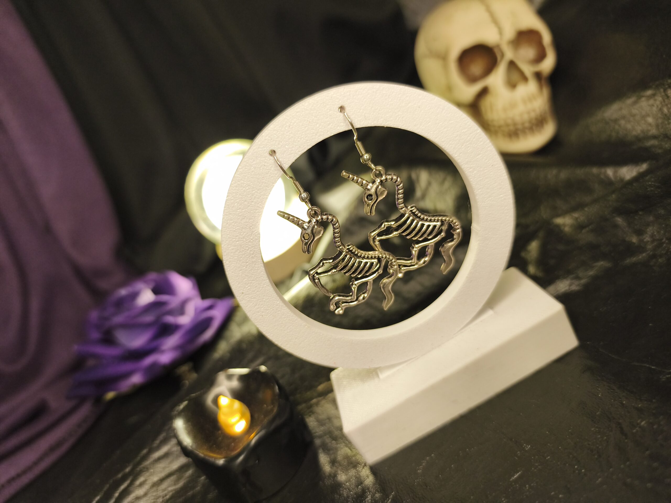 Brinco Gótico Esqueleto de Unicórnio – Pingente Memento Mori Fantástico