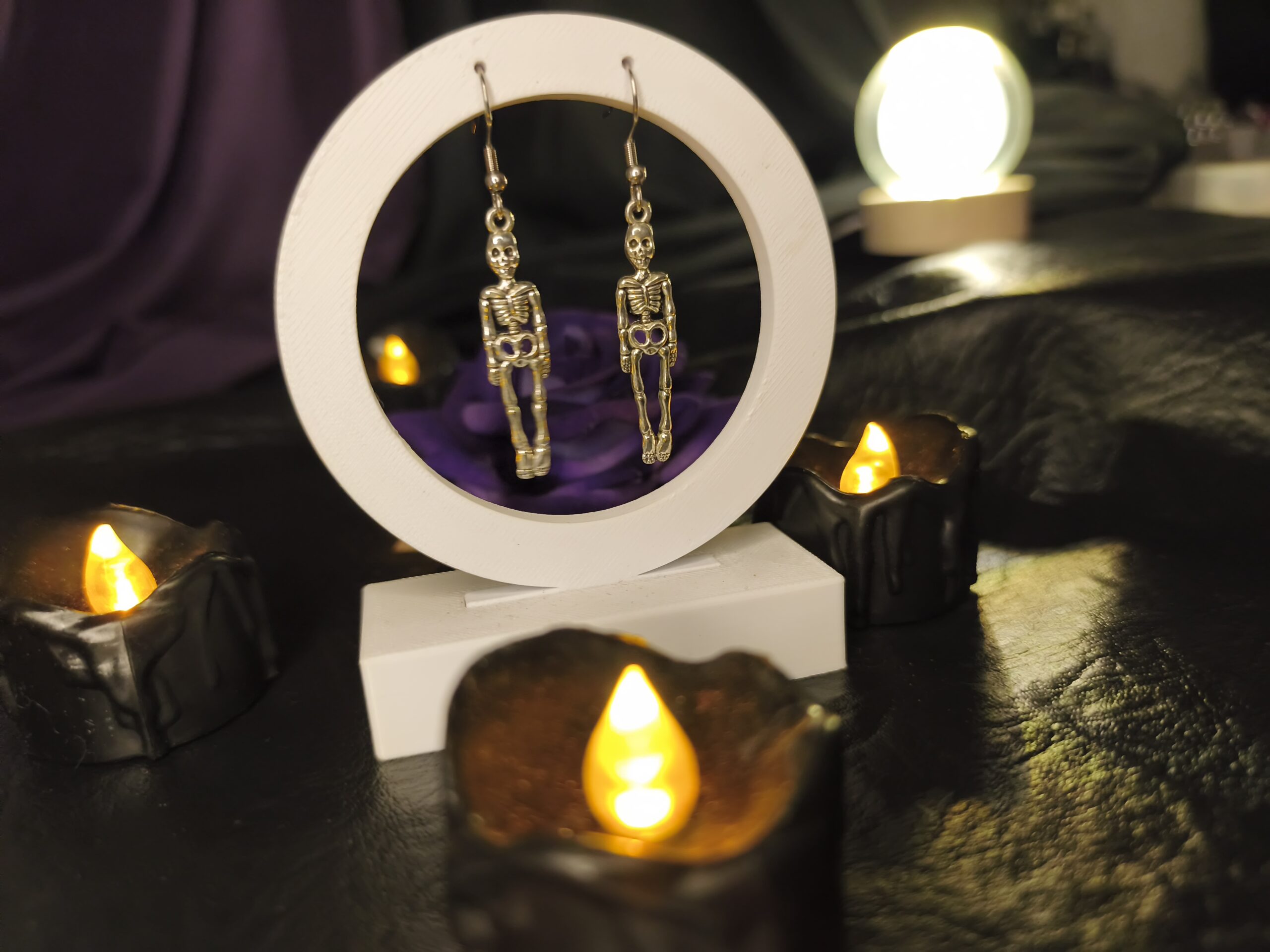Adote o charme mórbido e a lembrança da mortalidade com o Brinco Gótico Esqueleto Sólido. Este acessório impactante apresenta um esqueleto humano completo em metal prateado, com um design robusto e clássico. O esqueleto é um ícone atemporal do Gótico e do Memento Mori (lembre-se que você vai morrer), representando o lado sombrio e filosófico da vida. É a joia perfeita para o estilo Gótico Sombrio, festas de Halloween ou para quem valoriza acessórios com forte simbolismo macabro.