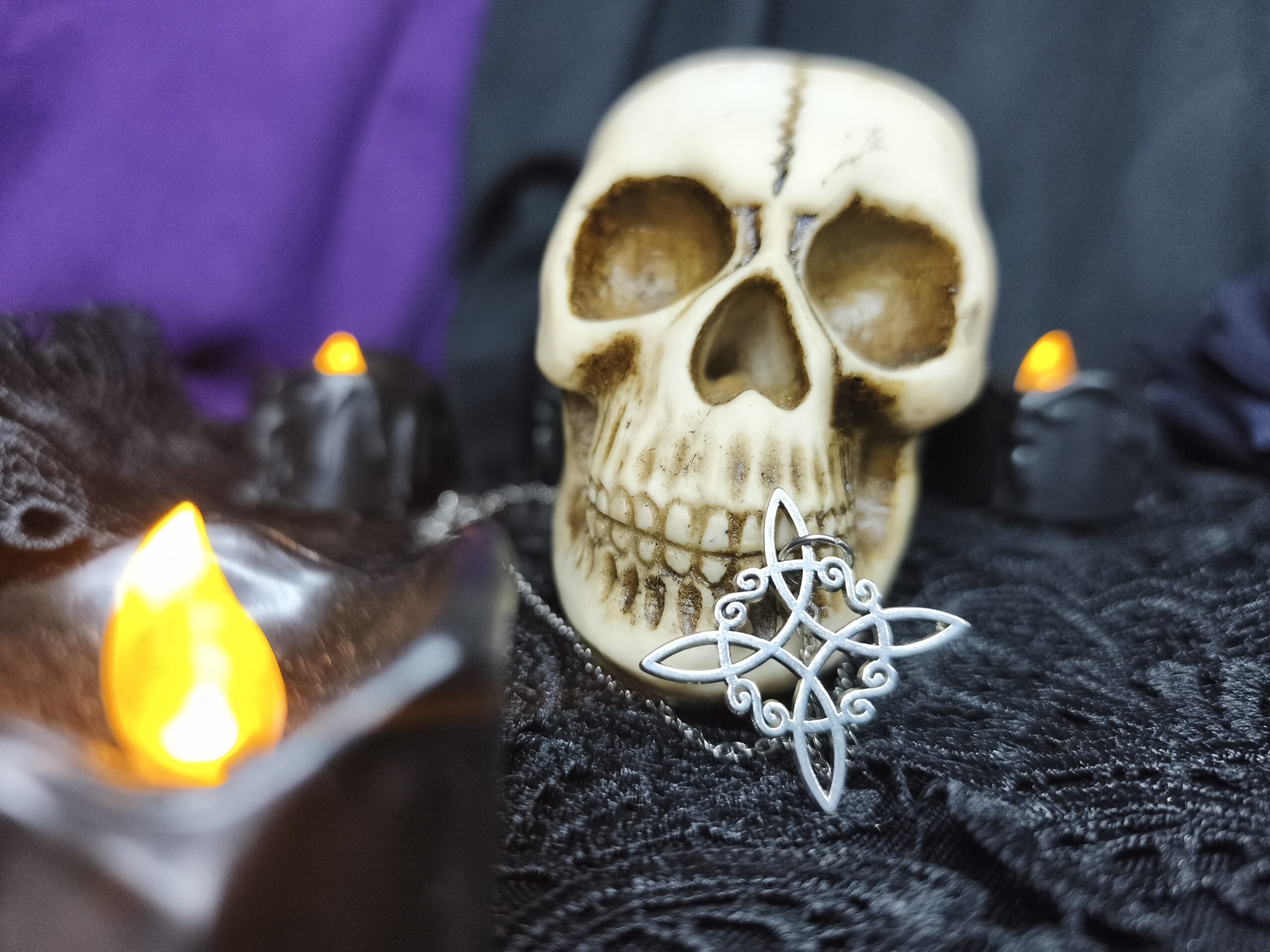 Invoque a magia e a proteção com o Colar Gótico Nó Celta da Bruxa, uma joia que transcende o simples acessório. Este Colar de Bruxa apresenta um design intrincado de Nó Celta, que simboliza a interconexão e o poder místico. O pingente em metal prateado é leve, mas carregado de significado esotérico, sendo perfeito para quem se identifica com a cultura Wicca, a magia natural ou o estilo Gótico Místico. Use este colar para honrar seu caminho espiritual e adicionar um toque de poder ancestral ao seu visual diário.